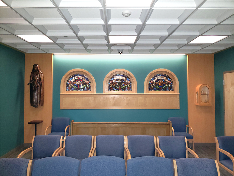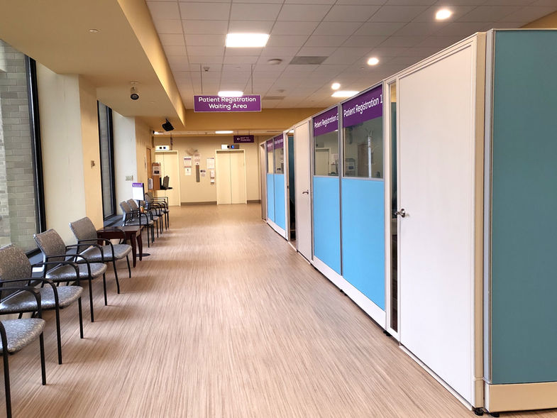 The 8,500 square foot Emergency Department Expansion Project required extensive planning, leading to the relocation of the Chapel, reconfiguration of the existing blood lab, and relocation of the ED patient registration area in order to free up contiguous space for new Behavioral Health and Rapid Medical Evaluation pods as expansion of the existing Emergency Department. New welcome desks at the hospital main entrance and ED patient registration greet and orient visitors. Additional ED registration stations improve flow and reduce ED wait times. The new location of the Chapel, opening onto the atrium, strengthens the hospital's connection to its mission. Reconfiguration of the blood lab waiting and registration areas improves the patient experience. The heart of the project, additions of Behavioral Health and Rapid Medical Evaluation pods, align the hospital's capacity with current patient needs.